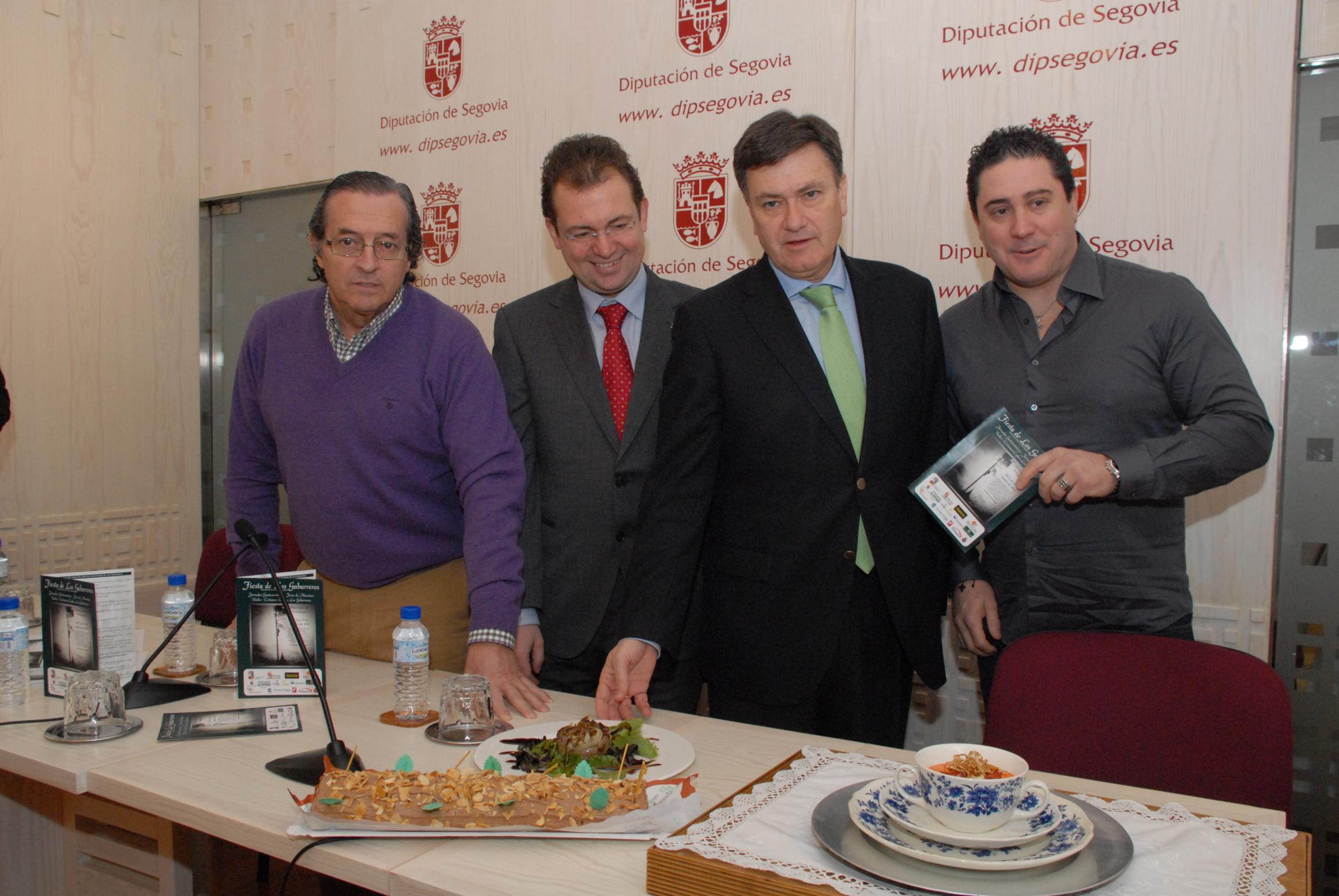 El Presidente de la Diputación, Francisco Javier Vázquez, y el Diputado de Cultura, José Carlos Monsalve, acompañados por el Alcalde de El Espinar, Francisco Jorge y de representantes de los hosteleros del municipio de El Espinar han presentado en la mañana de hoy la Fiesta de los Gabarreros que tendrá lugar en dicho municipio del 2 al 10 del marzo.